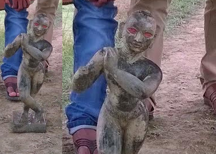 समय मिट्टी में अचानक दिखाई दी। मिट्टी से मूर्ति को बाहर निकाला गया।