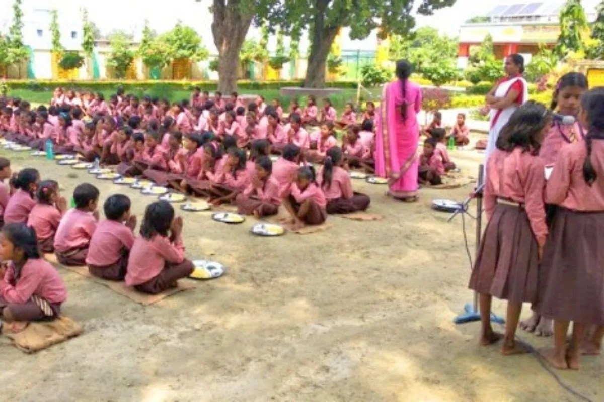 मध्यान भोजन खाते बच्चे फोटो सोर्स बेसिक शिक्षा विभाग