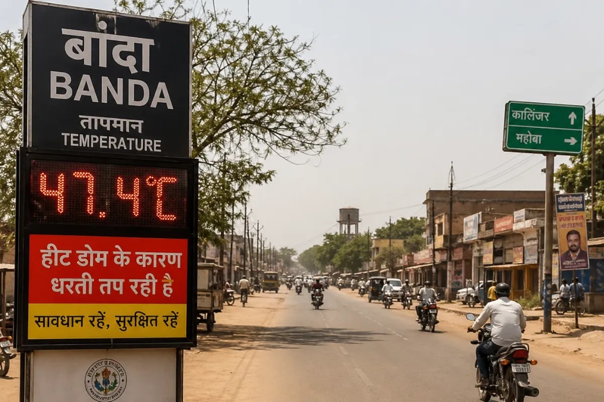 IMD alert about heat Dome: मौसम विभाग के अनुसार उत्तर प्रदेश में बांदा एक बार फिर सबसे गर्म जिला रहा। यहां का अधिकतम तापमान 47.4 डिग्री सेल्सियस दर्ज किया गया है, जबकि प्रयागराज और बनारस का तापमान अभी भी 45 डिग्री सेल्सियस या इससे ऊपर दर्ज किया गया है। मौसम वैज्ञानिक के अनुसार इस समय हीट डोम (heat dome) की स्थिति बनी हुई है। यह स्थिति तब बनती है जब आसमान में उच्च दबाव का क्षेत्र ढक्कन की तरह काम करता है, जो नीचे की गर्म हवाओं को ऊपर नहीं जाने देता है। प्रेशर कुकर की तरह गर्म हवा में एक ही जगह इकट्ठा हो जाती है। जो एक बड़े इलाके को अपने चपेट में लेता है। मौसम वैज्ञानिकों की मानें तो यह लंबे समय तक भी रह सकता है।