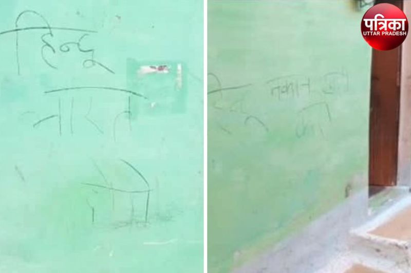 Banda news: दीवार में "हिंदू भारत छोड़ो" "हिंदू मकान खाली करो" की फोटो