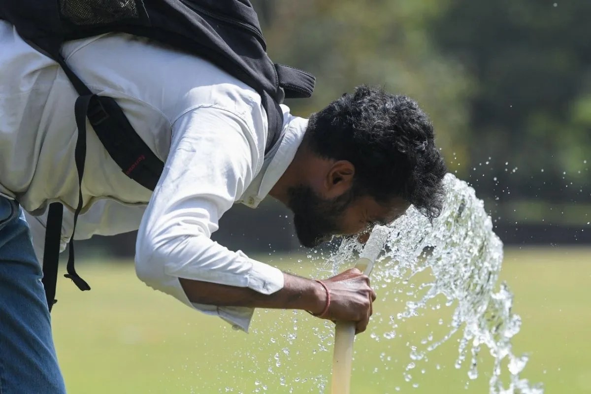 गर्मी से परेशान युवक, मुंह पर पानी डालते हुए, PC- ANI