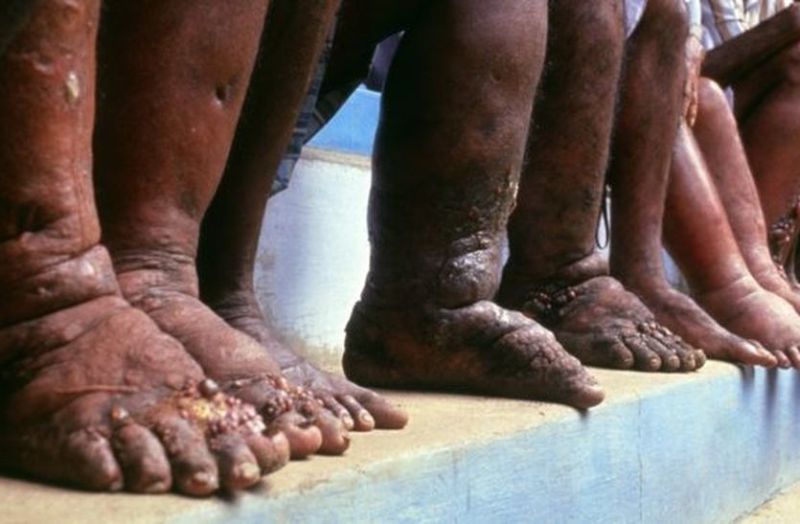इस रोग का संक्रमण सामान्यतया बचपन में ही होता है। बीमारी वर्षों बाद सामने आती है। इस बीमारी में टांगों, हाथों, अंडकोश एवं शरीर के अन्य भागों में अत्यधिक सूजन होने लगती है। मगर बाद में यह सूजन स्थायी और लाइलाज हो जाती है।