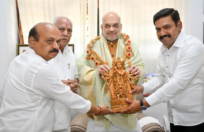 ड्रग्स तस्करी और राष्ट्रीय सुरक्षा पर क्षेत्रीय सम्मेलन की अध्यक्षता करने पहुंचे शाह सबसे पहले येडियूरप्पा के निमंत्रण पर नाश्ते के लिए उनके सरकारी आवास कावेरी पहुंचे। उनके आगमन पर येडियूरप्पा जैसे ही फूलों का गुलदस्ता लेकर उनके स्वागत के लिए आगे बढ़े, शाह ने इशारा किया कि गुलदस्ता विजयेंद्र को दें। पहले येडियूरप्पा समझ नहीं पाए और उन्होंने दोबारा गुलदस्ता भेंट करने की कोशिश की। लेकिन, शाह ने उन्हें फिर से कहा कि गुलदस्ता विजयेंद्र को दें। इसके बाद विजयेंद्र ने येडियूरप्पा के हाथों से फूलों का वह गुलदस्ता लेकर शाह को भेंट किया। शाह ने उसे मुस्कराते हुए स्वीकार किया और विजयेंद्र की पीठ भी थपथपाई।