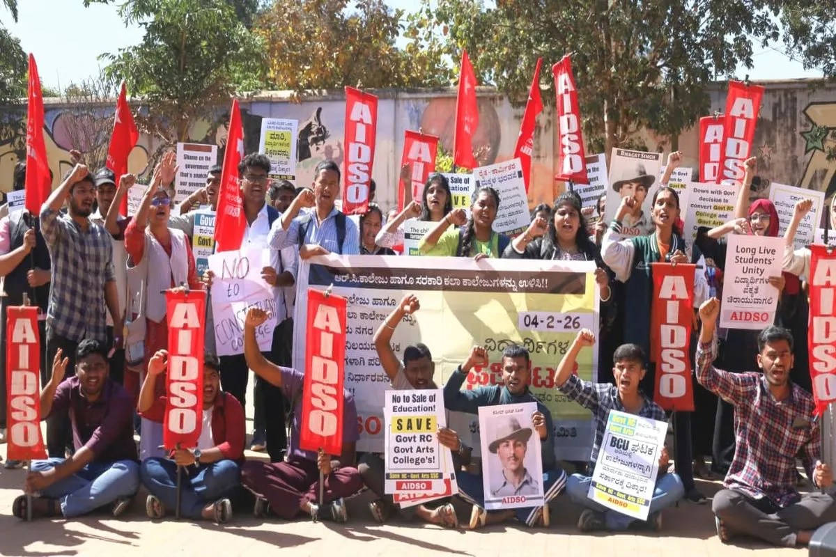 राज्य Karnataka सरकार के उस फैसले के खिलाफ कड़ा विरोध दर्ज कराया, जिसमें ऐतिहासिक सरकारी आर.सी. कॉलेज और सरकारी कला कॉलेज को डॉ. मनमोहन सिंह बेंगलूरु सिटी यूनिवर्सिटी के घटक कॉलेज में परिवर्तित करने की प्रक्रिया तेज की जा रही है। संगठन ने आरोप लगाया कि यह कदम गरीब और मध्यमवर्गीय छात्रों के हितों के खिलाफ है। प्रदर्शनकारियों ने सरकार से छात्र हितों को प्राथमिकता देने, दोनों संस्थानों को सरकारी कॉलेज के रूप में ही बनाए रखने और सस्ती व सुलभ उच्च शिक्षा सुनिश्चित करने की मांग की।