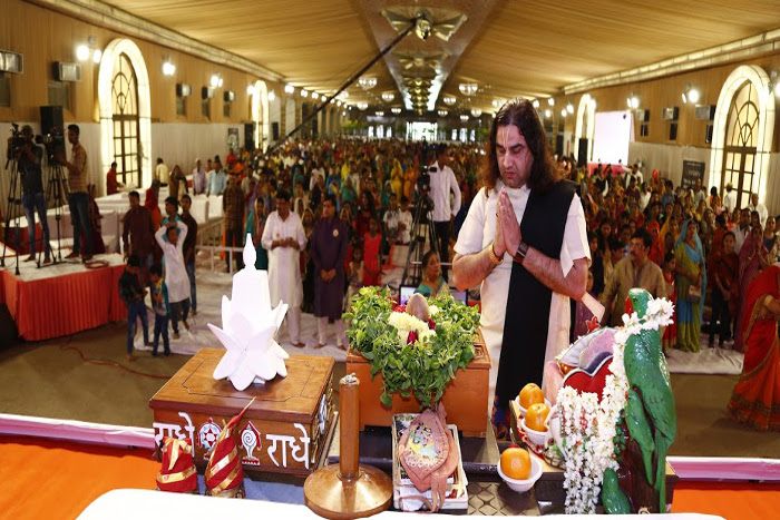 बेंगलुरु के प्रिंसेस श्राईन, पैलेस ग्राउंड में विश्व शान्ति सेवा समिति बैंगलोर एवं विश्व शांति सेवा चेरिटेबल ट्रस्ट द्वारा देवकीनंदन ठाकुर महाराज के सानिध्य में श्रीमद् भागवत कथा का आयोजन किया गया इस कथा के पहले दिन हजारों की संख्या में भक्तों ने महाराज के श्रीमुख से कथा का श्रवण किया। शुरुआत दीप प्रज्ज्वलन और भागवत आरती के साथ की गई। देवकीनंदनमहाराज ने कथा की शुरुआत करते हुए कहा की हमारे ऋषि मुनियों ने जो दिया है आज का साइंस उसी पर आधारित है....जो हमारे ऋषि मुनियों ने दिया वो साइंस दे नहीं सकता। आकाश में जो सबसे पहली ध्वनी हुई वो ऊँ की थी और इसी ऊँ में पूरी दुनिया समाई है।