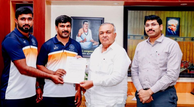 बेंगलूरु. बेंगलूरु मेट्रोपॉलिटन ट्रांसपोर्ट कॉरपोरेशन (बीएमटीसी) के ऑपरेटर विनय कुमार.वी और वाई.डी.शशिधर दोहा कतर में 13 से 17 मार्च तक होने वाली अन्तरराष्ट्रीय कबड्डी प्रतियोगिता में टीम इंडिया का प्रतिनिधित्व करेंगे। दोनों खिलाडिय़ों को भारत की टीम में चुना गया है। परिवहन मंत्री रामलिंगा रेड्डी और बीएमटीसी के प्रबंध निदेशक रामचंद्रन आर. ने दोनों खिलाडिय़ों को शुभकामनाएं दी हैं। रामलिंगा रेड्डी ने बुधवार को दोनों खिलाडिय़ों से मुलाकात की और उनका उत्साहवर्धन किया। निगम ने कतर अंतरराष्ट्रीय कबड्डी प्रतियोगिता में भाग लेने वाले खिलाडिय़ों को प्रशिक्षण और सहायता प्रदान करने के लिए प्रतिबद्ध है।
