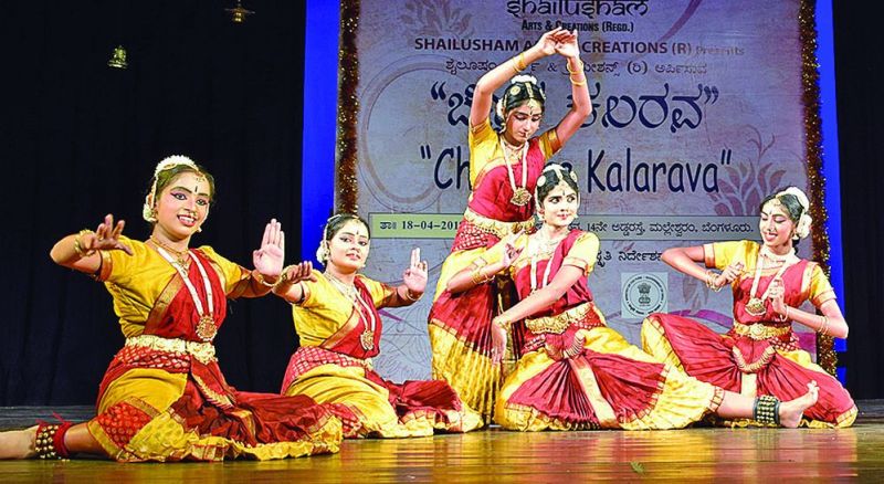 बेंगलूरु. शैलुशम आट्र्स एण्ड क्रिएशन की ओर से मल्लेश्वरम स्थित सेवा सदन सभागार में नृत्य संगीत से भरपूर शैलुशम उत्सव 'चिन्नारा कलारव 2018' में बच्चों व युवाओं की मनमोहक नृत्य व संगीत प्रस्तुतियों का श्रोताओं ने खूब आनंद लिया।