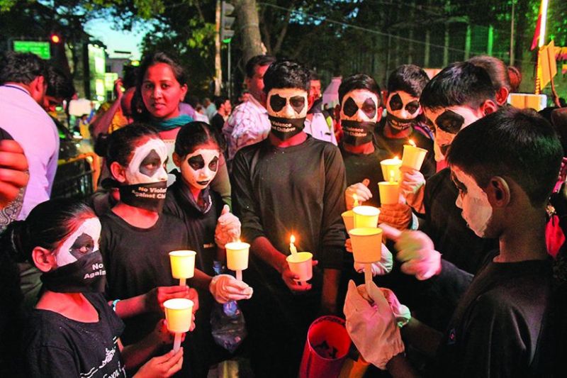 कैंडल मार्च निकाल बच्चों ने मांगा हक
