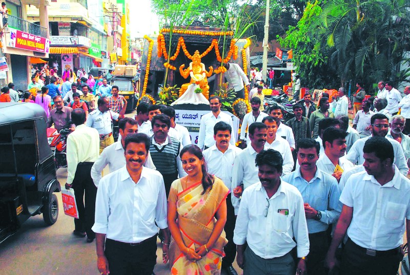 मण्ड्या. अच्छे मानसून और केआरएस बांध भरने की खुशी में यूथ ग्रुप मंड्या की ओर से सोमवार को कावेरी माता की प्रतिमा वाहन में रखकर शहर में शोभायात्रा निकाली और लोगों को मिठाई बांटकर खुशी मनाई। अध्यक्ष अनिल आनंद ने बताया कि 124 महिलाओं को चूडिय़ों के साथ ब्लाउज पीस शगुन के तौर पर वितरित किए।