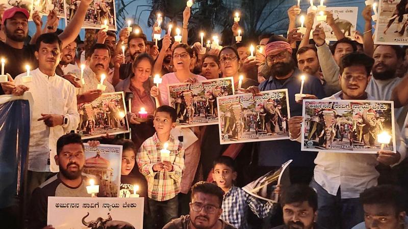 पशु अधिकार कार्यकर्ताओं सहित विभिन्न क्षेत्रों के लोगों ने मृत हाथी अर्जुन के लिए न्याय की मांग करते हुए रविवार को प्रदर्शन किया और मोमबत्ती जलाकर जुलूस निकाला। सकलेशपुर में यसलूर के पास जंगली हाथी पकडऩे के एक अभियान के दौरान एक जंगली हाथी ने अर्जुन पर हमला कर दिया था और अर्जुन की मौत हो गई थी।