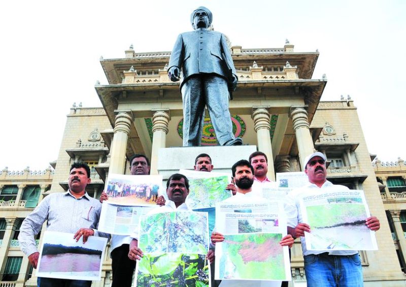 धरने पर बैठे चिकमगलूरु के विधायक सी.टी. रवि तथा मुडीगेरे के विधायक एम.पी. कुमारस्वामी ने जिले में बारिश से हुई क्षति के बारे में अखबारों में छपी खबरों की कटिंग को उठाकर केंगल हनुमंतय्या की प्रतिमा के सामने विरोध प्रदर्शन किया। रवि ने इस मौके पर कहा कि चिकमगलूर जिले में इस बार औसत से कहीं अधिक बारिश हुई है। जिले के शृंगेरी, मुडीगेरे तथा कलसा जैसे क्षेत्रों में 24 इंच से अधिक बारिश दर्ज की गई है।