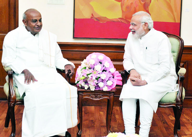 पूर्व प्रधानमंत्री एच.डी. देवेगौड़ा ने बुधवार को यहां प्रधानमंत्री नरेंद्र मोदी से उनके सरकारी आवास पर मुलाकात की। एक आधिकारिक बयान में इस आशय की जानकारी दी गई है, लेकिन बयान में मुलाकात के बारे में कोई विवरण नहीं दिया गया है। किसी पूर्व प्रधानमंत्री के साथ मोदी की यह दूसरी मुलाकात थी। इसके पहले मोदी ने अपने पूर्ववर्ती मनमोहन सिंह से सात रेसकोर्स स्थित सरकारी निवास पर 27 मई को मुलाकात की थी।