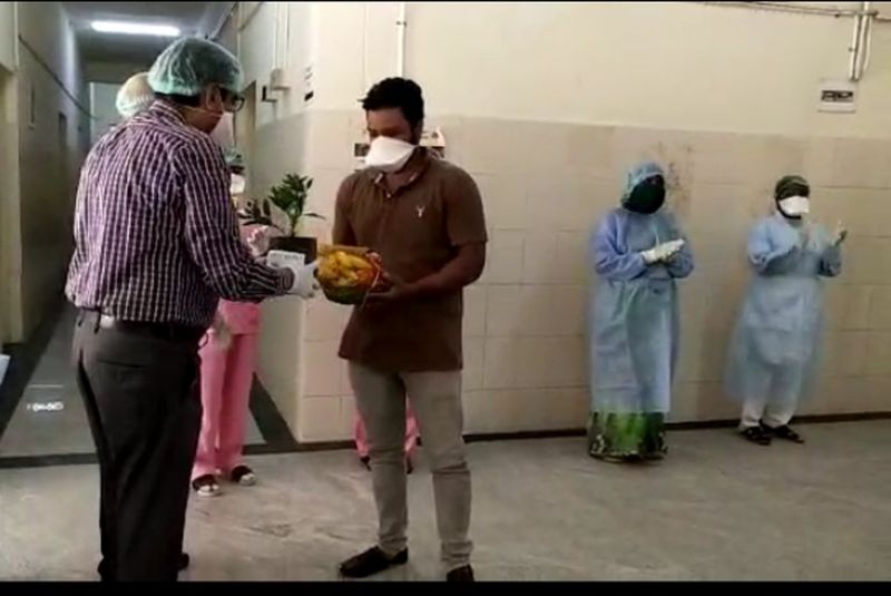 बेंगलूरु. जानलेवा बीमारी कोविड-19 को मात देकर अस्पताल से स्वस्थ होकर निकलने वाले रोगियों का स्वागत एक विजेता की तरह किया जा रहा है। बेंगलूरु और चिक्कबल्लापुर के अस्पतालों में इस घातक बीमारी से जंग जीतने वालों के लिए डॉक्टरों, नर्सों और चिकित्साकर्मियों ने तालियां बजाई और गुलदस्ते देकर उन्हें घर भेजा।