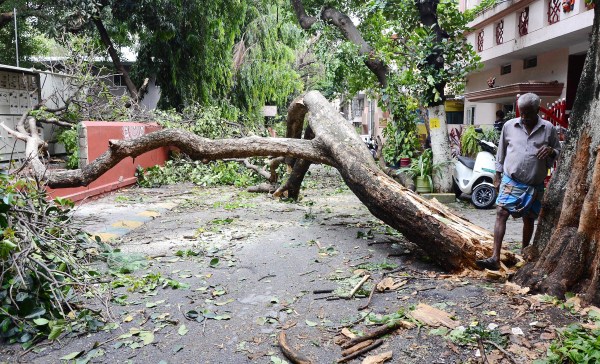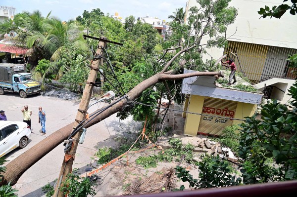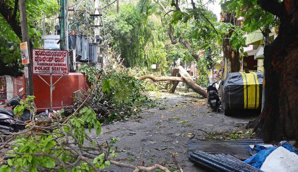 महालक्ष्मी ले आउट में तेज बरसात के दौरान गिरा पेड़।