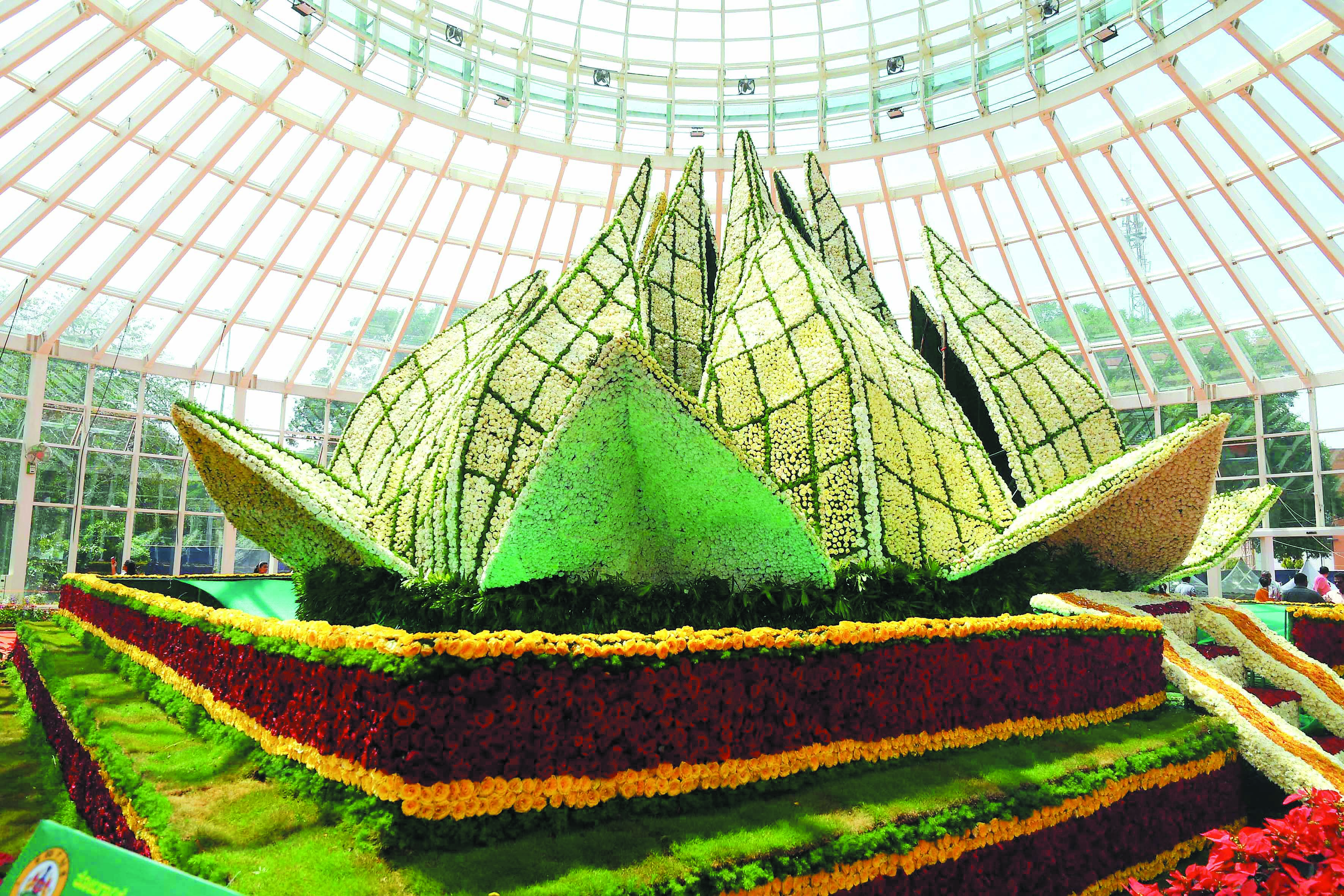 बागवानी विभाग के अनुसार दशहरा महोत्सव के इतिहास में यह अब तक सबसे बड़ी पुष्प प्रदर्शनियों में एक है। करीब 1020 वर्ग मीटर परिसर को चारों ओर से कई प्रकार की आकर्षक पुष्प प्रतिकृतियां सजाया गया है। लोटस टेम्पल के अतिरिक्त अशोक स्तंभ, मिक्की माउस, डोल्फिन, नृत्य करती गुडिय़ा, पेंगुइन, मैसूरु महल का जयमार्तेण्डेय द्वार, हाथीगाड़ी आदि प्रतिकृतियां पर्यटकों को आकर्षित कर रही हैं।