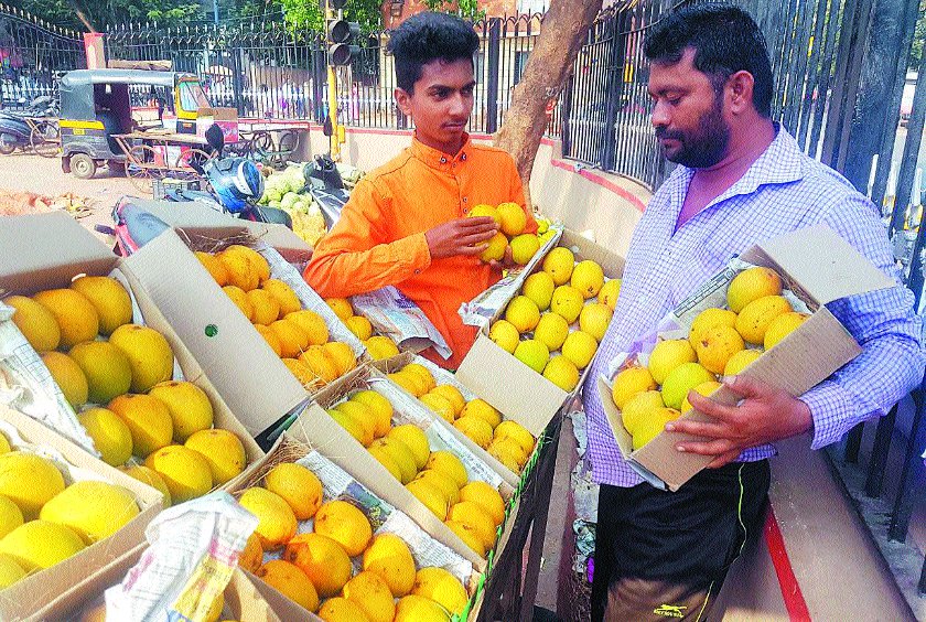 हुब्बल्ली. फलों के राजा आम ने शहर की मंडी में दस्तक दी है। सूखे के बावजूद आम के समय से पहले मंडी में आने से लोगों में खुशी छाई है। शहर के चन्नम्मा सर्किल के पास, जनता बाजार, दुर्गदबैल आदि जगहों पर आम की बिक्री आरम्भ हुई है। देवगढ़ का आपुस, धारवाड़ का कल्मी नस्ल के आम ग्राहकों का इंतजार कर रहे हैं। बाजार में एक दर्जन आम के 1200 रुपए से 16 00 रुपए के हिसाब से बिक रहे हैं। विभिन्न आवासीय क्षेत्रों में लगने वाली साप्ताहिक मंडियों में छोटे आकार के आम 300 से 400 रुपए प्रति दर्जन बिक रहे हैं।