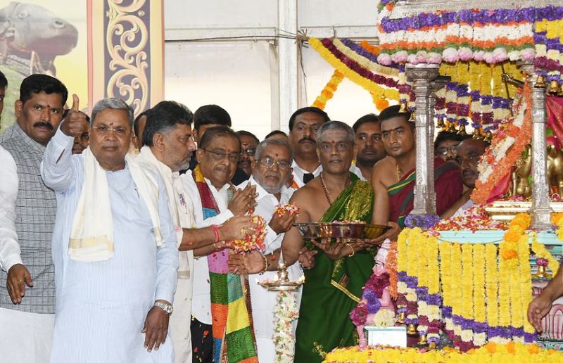 दस दिवसीय समारोह के भव्य उद्घाटन से पहले, सिद्धरामय्या ने मंत्रियों के साथ यहां देवी चामुंडेश्वरी की विशेष पूजा की। इस मौके पर सिद्धरामय्या ने कहा कि राज्य सरकार इस साल राज्य में सूखे की वजह से सादे तरीके से लेकिन परंपरा को ध्यान रखते हुए दशहरा उत्सव का आयोजन कर रही है। उन्होंने कहा, हमने देवी चामुंडेश्वरी से प्रार्थना की है कि कम से कम मानसून के दौरान यहां अच्छी बारिश हो।