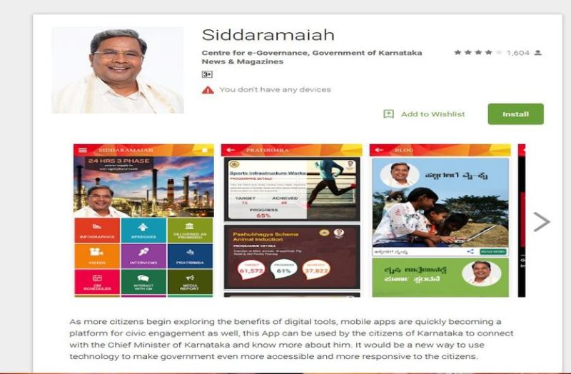 गौरतलब है कि पिछले साल नवम्बर में सिद्धरामय्या ने जनता से सीधे संवाद करने के लिए सिद्धरामय्या ऐप लांच किया था। इस ऐप की जिम्मेदारी राज्य सरकार के सेंटर फॉर ई-गवर्नेंस के पास है। एक लाख से अधिक लोगों ने इस ऐप को डाउनलोड किया है। गौरतलब है कि विवाद होने के बाद कांग्रेस ने अपने ऐप को गूगल प्ले स्टोर से हटा दिया है जबकि नमो ऐप में भी बदलाव किया गया है। भाजपा ने कांग्रेस पर ऐप के डाटा सिंगापुर के सर्वर पर भेजने का आरोप लगाया था। हालांकि, कांग्रेस का कहना है उसका ऐप पुराना हो चुका था और सक्रिय नहीं था।