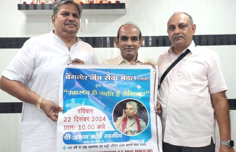 बेंगलूरु. बेंगलूरु जैन सेवा मंडल की ओर से 22 दिसम्बर को सुबह 10 बजे से फैडरेशन ऑफ कर्नाटका चैम्बर ऑफ कॉमर्स एंड इंडस्ट्री के सभागार में स्वास्थ्य ही सम्पत्ति है विषय पर सेमिनार का आयोजन किया जाएगा। इस अवसर पर आयुष्मान भव ट्रस्ट उज्जैन (मध्यप्रदेश) के संस्थापक अरुण ऋषि स्वर्गीय स्वास्थ्य ही सम्पत्ति विषय पर व्याख्यान देंगे।