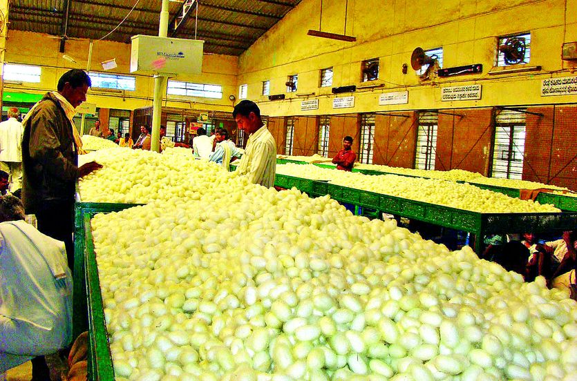 बेंगलूरु. देश के आंध्र प्रदेश, तमिलनाडु, पश्मिम बंगाल तथा महाराष्ट्र इन रेशम उत्पादक राज्यों में कर्नाटक पहले स्थान पर है। देश के रेशम उत्पादन में 50 फीसदी रेशम का उत्पादन कर्नाटक में होता है। कर्नाटक रेशम उत्पादन में पहले स्थान पर है। वर्ष 2017-18 में कर्नाटक में 10 हजार मेट्रिक टन से अधिक रेशम का उत्पादन हुआ था। आज भी रेशम की मांग के अनुपात में आपूर्ति नहीं होने के कारण चीन से रेशम आयात करना पड़ रहा है। लेकिन रेशम के कोकून के खरीदी दाम लगातार गिरने से रेशम उत्पादक किसानों में आक्रोश है।