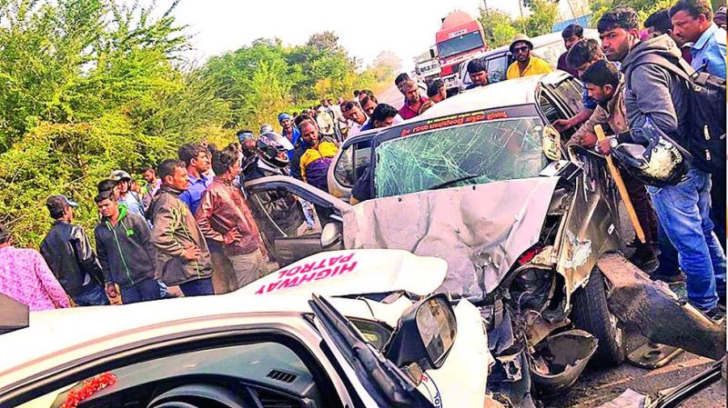 पुलिस के वाहन में सवार सहायक पुलिस निरीक्षक शंभय्या गंभीर रूप से घायल हो गया। उसे अस्पताल में भर्ती कराया गया है। पुलिस ने मामला दर्ज किया है।