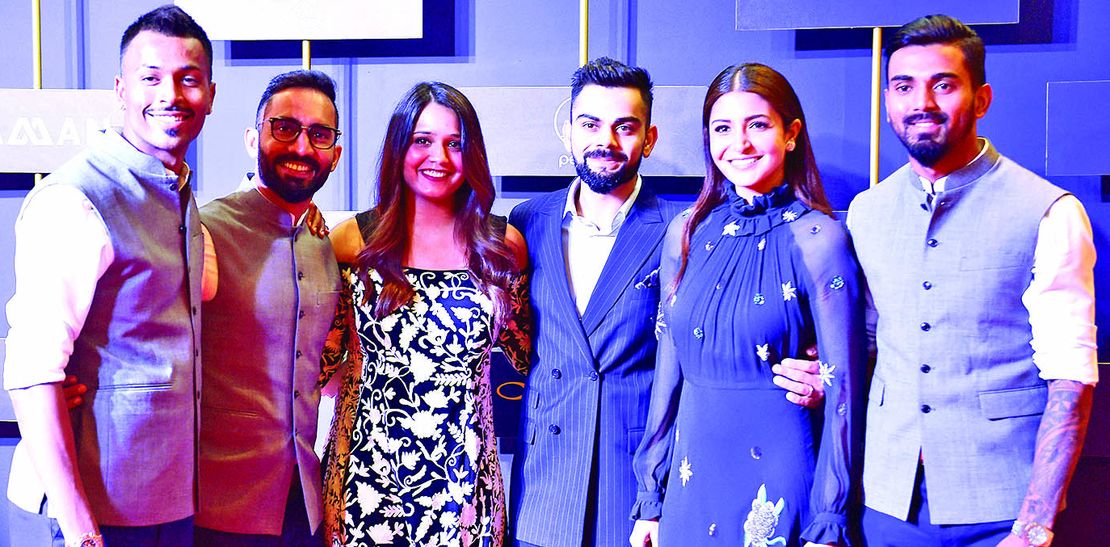 बेंगलूरु में मंगलवार को बीसीसीआई के वार्षिक पुरस्कार समारोह में कप्तान विराट कोहली और अनुष्का शर्मा के साथ दिनेश कार्तिक और उनकी पत्नी दीपिका पल्लीकल, हार्दिक पंडया और केएल राहुल। इस समारोह में कोहली को वर्ष के सर्वश्रेष्ठ अंतरराष्ट्रीय खिलाड़ी के पॉली उमरीगर पुरस्कार से सम्मानित किया गया।