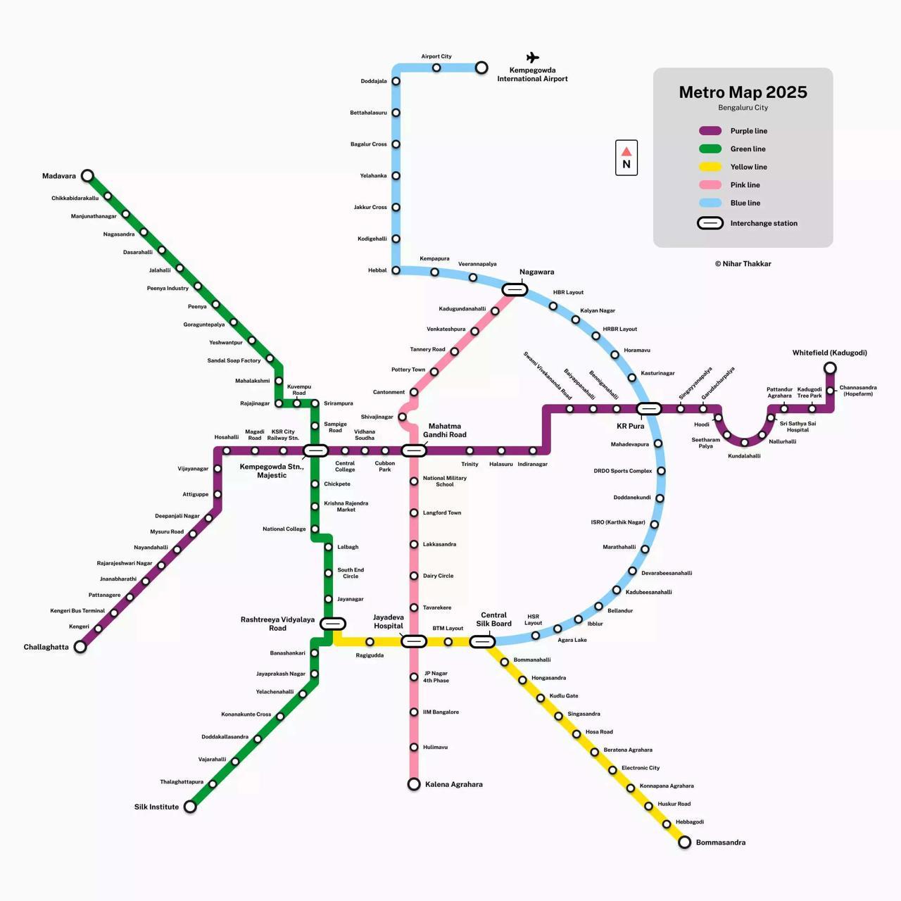 बेंगलूरु मेट्रो एंड सबअर्बन रेल पैसेंजर एसोसिएशन के अध्यक्ष प्रकाश मांडोत ने कहा कि बेंगलूरु शहर के मैजेस्टिक से हवाई अड्डा जाना है तो दो से तीन जगह मेट्रो बदलना अनिवार्य होगा। ऐसे में यदि यात्री के पास सामान अधिक हुआ तो उसे बार-बार इंटरचेंज करना काफी असुविधा जनक होगा। बेंगलूरु के हवाई अड्डे के लिए हर जगह से सीधी मेट्रो कनेक्टिविटी करना संभव नहीं है। मैजेस्टिक कैम्पेगौड़ा से हवाई अड्डा तक पहुंचने के लिए सबअर्बन रेल ही इसका सीधा विकल्प हो सकता है। लेकिन इस सपने को पूरा होने में करीब सात साल तक लग सकते हैं। मेट्रो का जब प्रोजेक्ट तैयार किया जा रहा था। उस वक्त हवाई अड्डे से कनेक्टिविटी का ध्यान विशेष रूप से रखा जाना चाहिए था। उस दौरान इंजीनियरों ने इसकी अनदेखी की। यदि शुरुआत में ध्यान रखते तो मल्टीपल इंटरचेंट की जरूरत नहीं पड़ती है। एक या दो इंटरचेंज में यात्री हवाई अड्डा पहुंच सकता था।