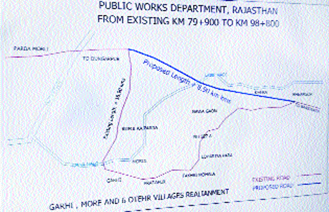 वर्तमान दूरी 19 किमी से घटकर 9 किमी रह जाएगी। इससे प्रस्तावित मार्ग में मोर, गढ़ी, परतापुर, लोहारिया पाड़ा, नवागांव आदि नहीं आएंगे। हालांकि इस मार्ग की डीपीआर बनाने वाली कम्पनी ने अभी तक पूरी रिपोर्ट सार्वजनिक निर्माण विभाग को दी नहीं हैं, लेकिन सूचना प्राप्त करने के अधिकारी के तहत आवेदक गोपीराम अग्रवाल को विभाग की ओर से उपलब्ध कराई गई जानकारी में बताया गया है कि इस मार्ग में अभी तक स्वरूपगंज एवं रोहिड़ा में भुलागांव के पास और डूंगरपुर में देवल एवं धानी उपली के पास से होता हुआ बायपास प्रस्तावित है।