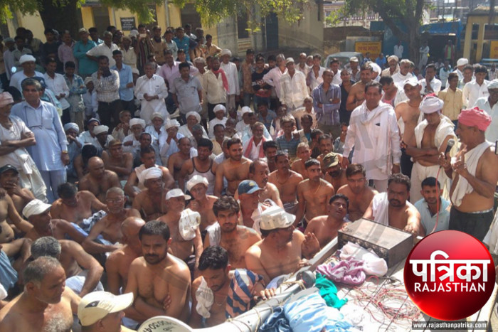 बांसवाड़ा. बागीदौरा. समर्थन मूल्य पर सोयाबीन खरीदी के लिए गत कई दिनों से संघर्षरत किसानों के सब्र का बांध सोमवार को टूट गया और अपनी मांगों के लिए बागीदौरा में उन्होंने अद्र्धनग्न होकर प्रदर्शन किया। खरीद को लेकर गत दिनों दिए गए अल्टीमेटम के बाद भारतीय किसान संघ के बैनर तले बड़ी संख्या में किसान बागीदौरा बस स्टेण्ड के मुख्य चौराहे पहुंचे और प्रशासन के खिलाफ नारेबाजी कर धरने बैठ गए। किसानों का प्रतिनिधिमण्डल तहसीलदार राकेश कुमार से मिलने पहुंचा और वहां सोयाबीन खरीद के लिए अब तक गुणवत्ता निरीक्षक के नहीं पहुंचने की बात कही।