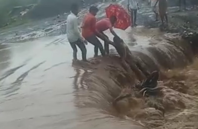 कुशलगढ़. टिमेडा बड़ा में पुल निर्माण के कारण बनाए बायपास नाले में तेज बहाव से पाइप बह गए। बाइक सवार युवक घाटा निवासी गांगजी राणा बाइक समेत नीचे गिर गया।सुरेश,कमलेश,ईश्वर ने हिमन्त दिखाते हुए युवक को नाले से बाहर निकाला। बायपास बन्द होने से बांसवाड़ा के लिए लोगों को आमलीपाड़ा से जाना पड़ रहा है।