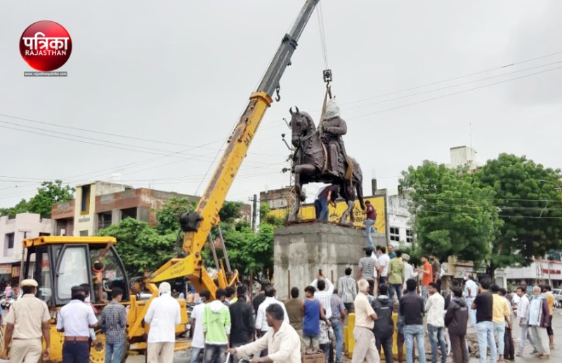 बांसवाड़ा. उदयपुर मार्ग स्थित महाराणा प्रताप चौराहे पर स्थापित होने वाली वीर शिरोमणि महाराणा प्रताप की नई प्रतिमा गुरुवार को बांसवाड़ा पहुंच गई। प्रतिमा का महाराणा प्रताप चौराहे पर अनावरण नवरात्रि में प्रस्तावित है। यहां उदयपुर मार्ग स्थित महाराणा प्रताप चौराहे पर चल रहे सौन्दर्यीकरण कार्य के अन्तर्गत बनाए आरसीसी स्ट्रक्चर पर इसे क्रेन की मदद से रखा गया। इस दौरान वागड़ क्षत्रिय महासभा के जिलाध्यक्ष राजेंद्रसिंह आनंदपुरी, पूर्व जिलाध्यक्ष कृष्णपालसिंह टामटिया, महेंद्रसिंह, गजवीरसिंह सहित समाज प्रतिनिधि उपस्थित रहे।