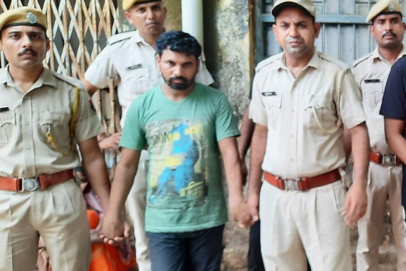 कोर्ट के बाहर पुलिस की पकड़ में सकन सिंह खड़िया।