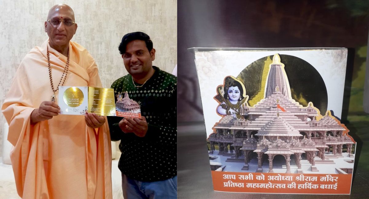 निमंत्रण पत्रिका में मंदिर के फोटो और आमंत्रण के साथ हृदय भारतवासियों के फूले नहीं समाए हैं, सदियों बाद अयोध्या में फिर से राम आए हैं... और 22 जनवरी त्रेता की स्मृति ताजा करती एक और दिवाली...आदि स्लोगन के साथ ही राममंदिर के शिखर कलशों राम के बाल स्वरूप की ज्वैलरी को भी गोल्ड कलर से प्रिन्ट किया है।