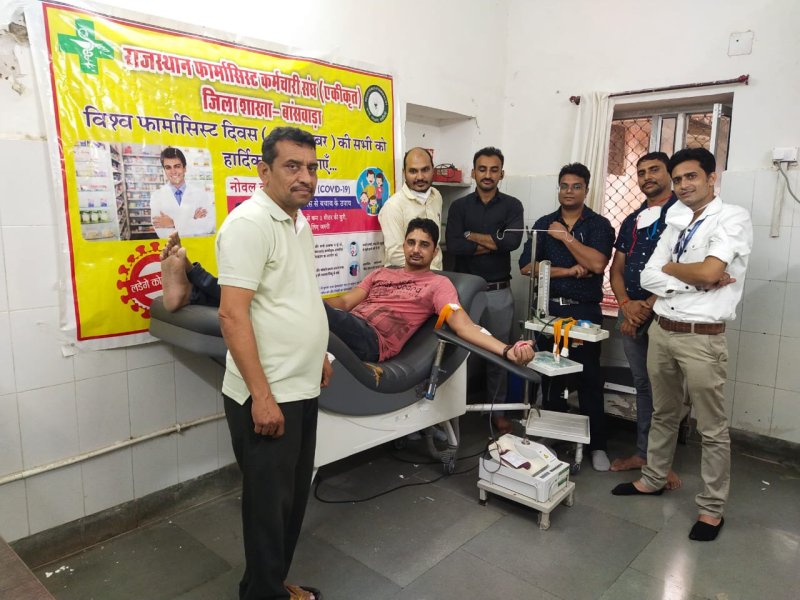 बांसवाड़ा. विश्व फार्मासिस्ट दिवस (World Pharmacist Day) के मौके पर शनिवार को राजस्थान फार्मासिस्ट संघ की बांसवाड़ा की ओर से रक्तदान किया गया। इससे पूर्व संगठन पदाधिकारियों और सदस्यों ने महात्मा गांधी चिकित्सालय में मरीजों को फल वितरित किए। इसके अतिरिक्त फार्मासिस्ट संहिता का वर्चुअल उद्घाटन किया गया। संगठन जिला अध्यक्ष रवीश जेम्स ने बताया कि जिले के राज्य कर्मचारियों के साथ-साथ एनएचएम, एआरटी सेंटर, मेडिकल स्टोर संचालक, मेडिकल रिप्रेसेंटेटिव, उपभोक्ता भंडार में कार्यरत कई फार्मासिस्ट ने कार्यक्रम में शिरकत की। साथ ही बताया कि संगठन पदाधिकारयों ने आमजन ने कोरोना से बचाव की अपील की। रक्तदान शिविर में रवीश जेम्स, रोहिताश्व पाटीदार, राकेश चौधरी, प्रियांक जोशी, जयेश गांधी एवं अन्य ने रक्तदान किया एवं जिनेश जैन उपाध्यक्ष ,जिगर पाठक, जयेश पाटीदार, मुकेश कुमार, सुभाष वर्मा, चिराग पानेरी, रेडड्रॉप संस्था के राहुल सराफ आदि ने सहयोग किया।