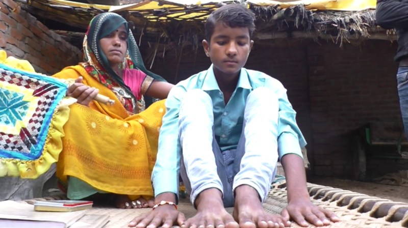 इसे कुदरत का करिश्मा कहें या फिर कुछ और। बाराबंकी जिले में शिवनंदन नाम का एक लड़का वैसे तो देखने में आम लड़कों की तरह ही है, लेकिन उसके दोनों हाथों और पैरों में छह-छह उंगलियों को देखकर हर कोई हैरत में पड़ जाता है, लेकिन शरीर की इन्हीं चौबीस उंगलियों की वजह से अब लड़के की जान खतरे में पड़ गई है। दरअसल ये पूरा मामला रामनगर थाना क्षेत्र के गर्री गांव का है। जहां एक लड़के के रिश्तेदार ही किसी तांत्रिक बाबा के अंधविश्वास और टोने-टोटके के जाल में फंसकर उसकी बलि देने की कोशिश में लगे हैं। जिसके चलते लड़के का पूरा परिवार डर-डर को जिंदगी गुजारने को मजबूर है। बच्चे के परिवार की आर्थिक स्थिति भी काफी खराब है और उसके पिता खुन्नी लाल मिस्त्री का काम करके किसी तरह गुजारा चलाते हैं। लेकिन रिश्तेदारों के नापाक मंसूबों के चलते वह अब बच्चे की हिफाजत के लिए कहीं नहीं जाता। जिसके चलते उनके सामने रोजी-रोटी का संकट भी आन पड़ा है।