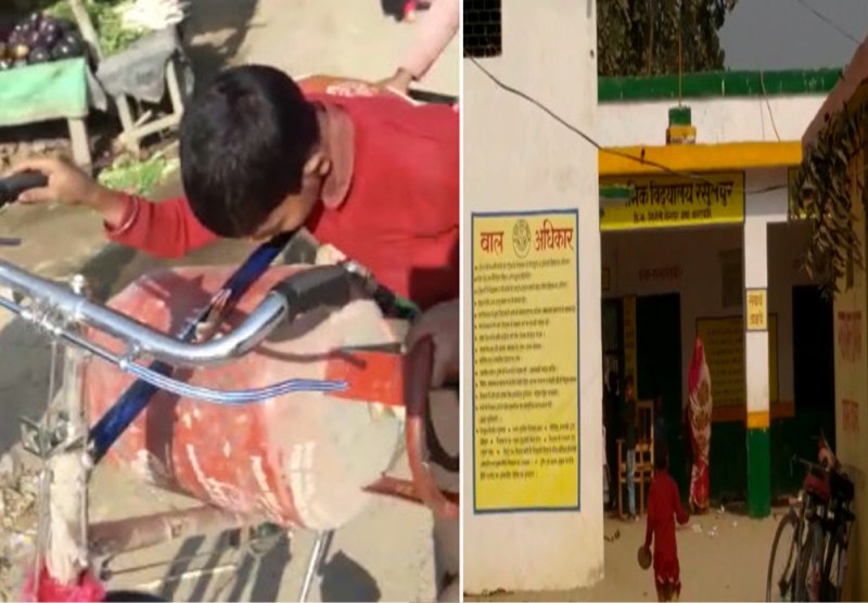 सिलेंडर ढोते हुए सरकारी स्कूल के बच्चों का वीडियो वायरल, गलती मानने के बजाय लड़ने को तैयार टीचर