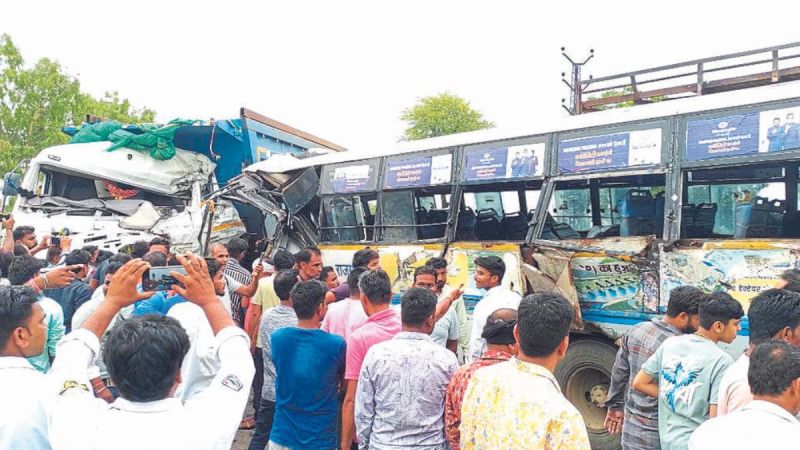Baran News: झालावाड़-बारां मेगा स्टेट हाइवे पर शुक्रवार शाम को मिनी सचिवालय के समीप रोडवेज बस व डपर की भिडंत हो गई। भिड़ंत इतनी भीषण थी कि बस का पूरा केबिन चकनाचूर होकर लगभग सभी सीटें टूट गई। डपर का केबिन भी चकनाचूर होकर कांच बिखर गए। इस हादसे में एक बालिका की मौत हो गई जबकि 41 जने घायल हो गए। इसमें 11 गंभीर घायलों को झालावाड़ रेफर किया गया है। रोडवेज बस व डपर की टक्कर से बारां निवासी 9 वर्षीय बालिका की मौत हुई है।