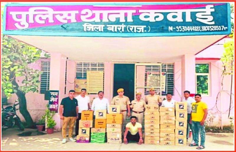 जिला पुलिस अधीक्षक राजकुमार चौधरी ने बताया कि विधानसभा चुनाव 2023 की आदर्श आचार संहिता की पालना करवाने के लिए टीमों का गठन कर अवैध शराब की बिक्री और अवैध गतिविधियों की रोकथाम के लिए विशेष अभियान चलाया जा रहा है। इसके लिए घनश्याम शर्मा अतिरिक्त पुलिस अधीक्षक बारां के सुपरविजन में वृताधिकारियों और थानाधिकारियों को निर्देशित किया गया था। मंगलवार देर रात कवाई थानाधिकारी थाना रामस्वरूप मीना के निर्देशन में डीएसटी टीम की सहायता से विशेष टीम का गठन किया गया। डीएसटी टीम बारां के साथ कवाई थाने की टीम में शामिल थाना प्रभारी रामस्वरूप मीणा, एएसआई किशन ङ्क्षसह, कांस्टेबल महेंद्र, दिनेश मीणा, पर्वत, चालक अशोक ने ग्राम मुसई गुजरान में कार्रवाई करते हुए राजेंद्र मेहता के मकान पर दबिश देकर बड़ी मात्रा में अंग्रे•ाी और देशी शराब के अलग-अलग ब्रांड की 41 पेटी शराब जब्त की। पकड़ी गई शराब में 22 पेटी देशी शराब, 13 पेटी बीयर, 6 पेटी अंग्रे•ाी शराब के क्वार्टर, हॉफ़ व बोतल शामिल हैं।