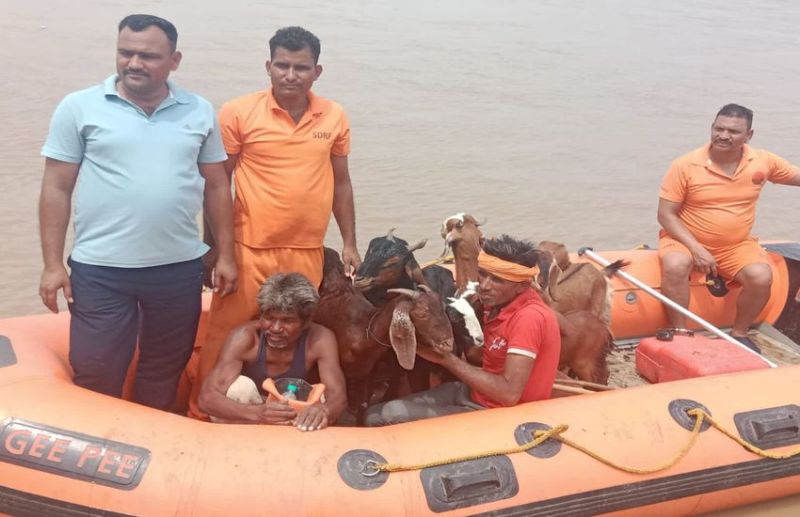 उपाधीक्षक राजेन्द्र कुमार मीणा ने बताया कि अमलावदा गांव के चार लोग बकरियां लेकर जंगल में चराने के लिए गए थे। इनमें दो चरवाहे तो शाम होने से पहले ही वापस गांव लौट गए थे। इसके बाद अचानक नदी में उफान आ गया। इससे निवासी पप्पू बैरवा व देवकिशन सहरिया और उनके मवेशी वहीं फंस गए। बाद में वे जंगल में अन्दर एक ऊंचे टापू पर चले गए। रविवार सुबह एसडीआरफ की टीम ने इंचार्ज रमेश मीणा के नेतृत्व में दोनों चरवाहों और बकरियों को सुरक्षित निकाल लिया। इधर, जिले में बारां तहसील क्षेत्र के कोटडीसुण्डा गांव निवासी चरवाहा भैरूपुरा चौकी क्षेत्र स्थित पार्वती नदी में टापू पर फंसे चरवाहे को रविवार सुबह रेस्क्यू टीम ने बचा लिया। तहसीलदार अब्दुल हफीज ने बताया कि कोटडीसुंडा में एसडीआरएफ की टीम ने इंचार्ज अमीलाल जाट के नेतृत्व में बोट के माध्यम से रेस्क्यू किया। यहां पर गौरीशंकर पुत्र अमरलाल पार्वती नदी के बीच टापू पर फंस गया था।