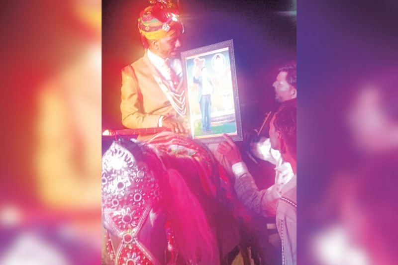 डॉ. भीमराव अंबेडकर की तस्वीर के साथ घोड़ी पर बैठा दूल्हा (फोटो: पत्रिका)