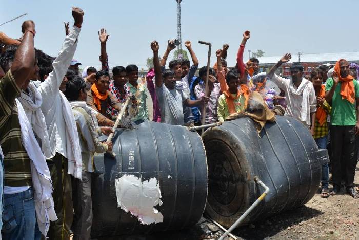मंडी में शुद्ध पेयजल के बंदोबस्त करने की मांग तथा अधिकारियों को मौके पर बुलाने के लिए अड़े प्रदर्शनकारियों का आक्रोश तब फूट पड़ा जब लम्बे इंतजार के बाद भी मंडी समिति का कोई भी नुमाइंदा मौके पर नहीं पहुंचा। इसके बाद प्रदर्शनकारियों ने एक के बाद एक कर तीन पेयजल टंकियों को नीचे गिरा दिया तथा उनमें तोडफ़ोड़ कर आग लगा दी।