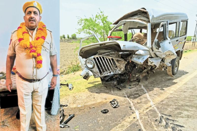 हैड कांस्टेबल सैफुद्दीन और हादसे के बाद मौके पर पड़ी क्षतिग्र्रस्त जीप (फोटो: पत्रिका)