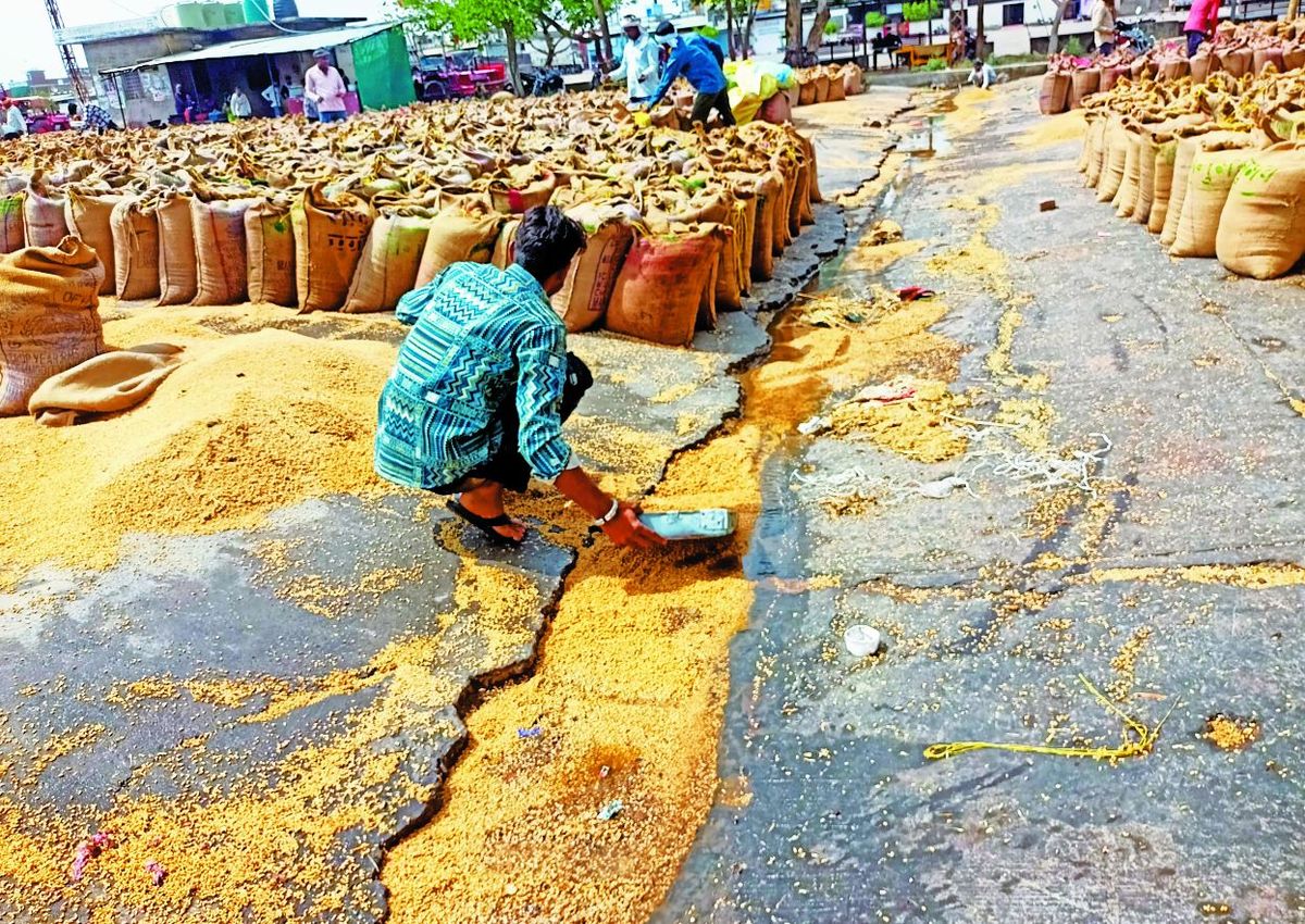 इससे मंडी में कई किसानों की ङ्क्षजस पानी में भीग गई। इसके चलते किसानों को नुकसान उठाना पड़ा है। मंडी में नाली में बहे गेहूं को निकालने का तथा भीगी सरसों व सोयाबीन को समेटते किसान नजर आए। हालांकि मौसम खराब होने के बाद ही किसानों ने ढेरियों को तिरपाल से ढंक दिया था। लेकिन तेज हवाओं ने तिरपाल को रुकने नहीं दिया। मंडी सचिव ने बताया कि मंडी में करीब 400 तिरपाल उपलब्ध है। सोमवार को सारे तिरपाल किसानों को दे दिए गए।