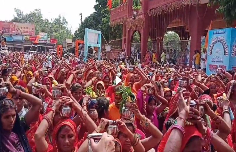 देखें वीडियो : जहां तक नजर, वहीं तक गागर लेकर निकली महिलाओं का सागर