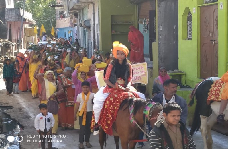 नाहरगढ़ कस्बे में शनिवार को गायत्री प्रज्ञा पीठ के तत्वावधान में आयोजित चार दिवसीय 51 कुंडीय श्रद्धा संवर्धन गायत्री महायज्ञ का आगाज कलश यात्रा के साथ हुआ। इसमें बड़ी संख्या में श्रद्धालु शामिल हुए। कलश यात्रा दोपहर लगभग एक बजे लाल किला स्थित कचहरी प्रांगण से शुरू हुई, जो जो प्रमुख मार्गों से निकली। इसका कई जगह पुष्प वर्षा कर स्वागत किया गया। महिलाएं भी भजनों पर भाव विभोर होकर नृत्य कर रही थीं। इसमें झांसी की रानी लक्ष्मीबाई और स्वामी विवेकानंद की झांकी सजाई गई। नशा मुक्ति और कन्या भ्रूण हत्या जैसी झांकियां भी आकर्षण का केन्द्र रही। इसके साथ ही चार दिवसीय महायज्ञ शुरू हो गया। शाम को कलश यात्रा का समापन कचहरी प्रांगण पर हुआ। जहां शांतिकुंज से आए विद्वानों के प्रवचन हुए। बाद में गायत्री माता की महाआरती तथा प्रसाद वितरण किया गया। कलश यात्रा के दौरान गायत्री परिवार के जिला संयोजक चंद्र प्रकाश सांखला, दिया फाउण्डेशन के मुकेश मीणा, प्रभुदयाल नागर, नंदकिशोर गोयल, घांंसीलाल नागर, श्याम नागर, ओमप्रकाश कुशवाह, अध्यापक हंसराज नागर, घनश्याम नागर, रघुनंदन शर्मा, सुधा जैन, भवानी शंकर खंडेलवाल, चंद्रमोहन कारपेंटर, महावीर जैन समेत सैकड़ों गायत्री परिवार के सदस्य मौजूद थे।