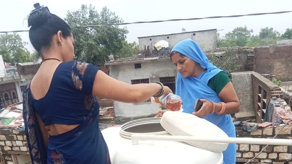 बारां जिले के एक गांव में एंटी लार्वा एक्टिविटी करते हुए। फोटो पत्रिका