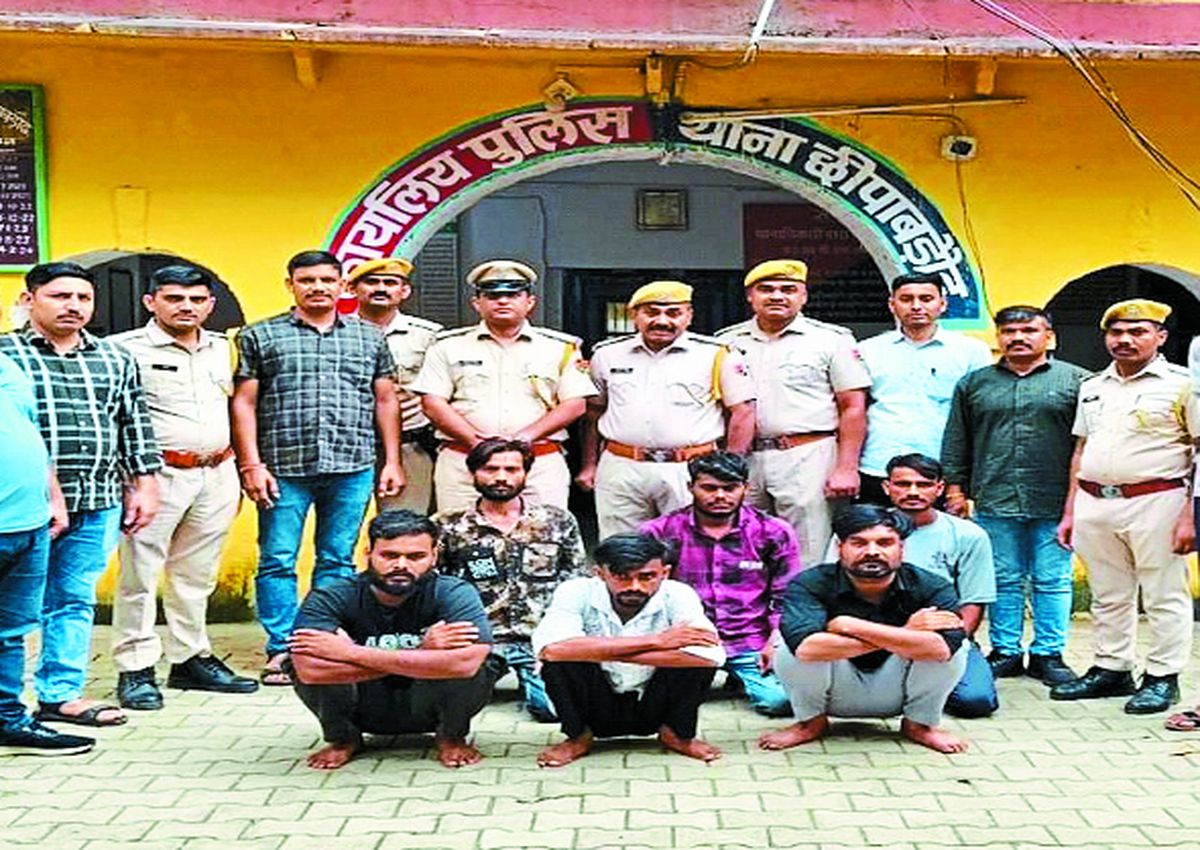 पुलिस ने राजा अली पुत्र अब्दुल गफ्फार 27 निवासी छीपाबड़ौद, राजेन्द्र सुमन उर्फ बल्लू पुत्र छीतरलाल 27 निवासी छीपाबड़ौद, भूरालाल उर्फ भूरा सुमन पुत्र घनश्याम 31 साल निवासी रावां, थाना विनोद कुमार सुमन पुत्र लक्ष्मीचंद 27 निवासी छीपाबड़ौद, कमलकिशोर पुत्र राधेश्याम सुमन 27 निवासी रावां, ललित नागर पुत्र चंद्रमोहन 24 निवासी छीपबड़़ौद को गिरफ्तार किया है।