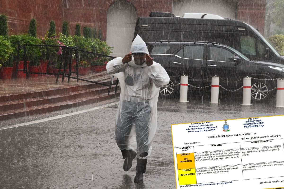 Orange Alert: मौसम विभाग ने ऑरेंज अलर्ट जारी करते हुए जयपुर, जयपुर शहर, दौसा, सवाईमाधोपुर, टोंक, बीकानेर, सीकर, चूरू अजमेर, करौली जिलों और आसपास के क्षेत्रों में अलग-अलग स्थानों पर मेघगर्जन के साथ हल्की से मध्यम बारिश, आकाशीय बिजली, धूलभरी आंधी (अपेक्षित हवा की गति 40-60 Kmph) आने की संभावना है। ऐसे में कमजोर संरचनाएं, कच्चे घरों, दीवारों, हल्की और ढीली बंधी वस्तुएं, बिजली की लाइनों, पेड़ो आदि को नुकसान हो सकता हैं।