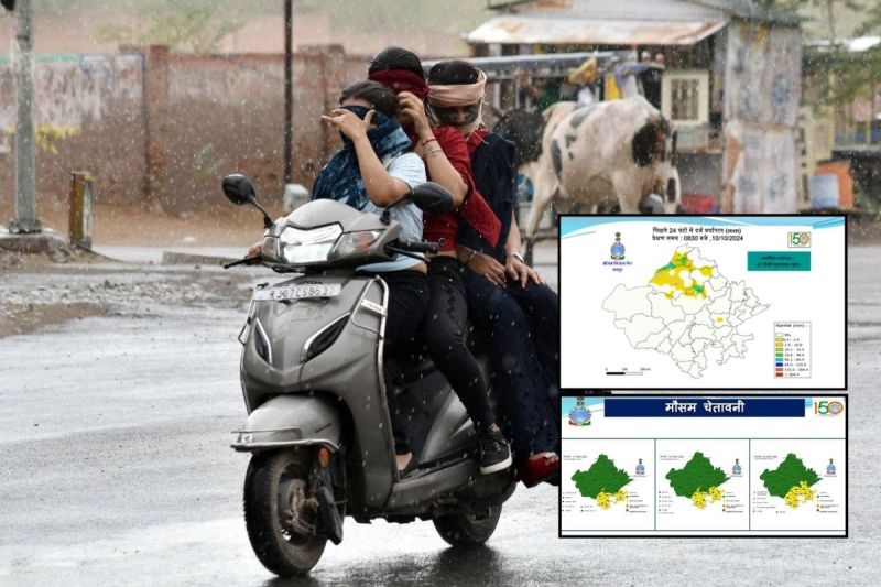 Rajasthan Today Weather: राजस्थान के कई जिलों में बारिश शुरू हो गई है, हालांकि मानसून की विदाई हो गई है लेकिन पश्चिमी विक्षोभ के असर से अब भी कई जगहों पर बारिश हो रही है। इस बारिश से तापमान में भी गिरावट आएगी और सुबह-शाम हल्की ठंड महसूस होगी। आज भी राजस्थान के जयपुर और कोटा सहित कई जिलों में हल्की बारिश शुरू हुई है। मौसम विभाग ने पहले ही आज का कोटा, उदयपुर और अजमेर संभाग में बारिश का अलर्ट जारी किया हुआ था। 11-12-13 अक्टूबर को भी इन्हीं जिलों में हल्की बारिश होने की संभावना है। इसके अलावा भी मौसम विभाग ने कल के लिए भी कई जिलों में येलो अलर्ट जारी किया हुआ है।
