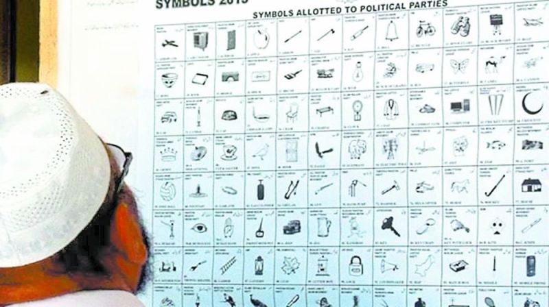 चुनाव चिन्हों में साइकिल, पंप, दूरबीन, ब्लैक बोर्ड, आदमी व पाल युक्त नौका, ईंटें, ब्रश, कैमरा, कैरम बोर्ड, जंजीर, शतरंज बोर्ड, नारियल फार्म, ऑटो रिक्शा, गुब्बारा, बेल्ट, क्रेन, घन, हीरा, डीजल पम्प, ड्रिल मशीन, डम्बल्स, कूडादान, बिजली का खंभा, लिफाफा, एक्सटेंशन बोर्ड, फुटबॉल, फुटबॉल खिलाड़ी, फंव्वारा, फ्राइंग पैन, गन्ना किसान, उपहार, ग्रामोफोन, हारमोनियम, रेत घड़ी, लैटर बॉक्स, नागरिक, पेंसिल डिब्बा, पेंसिल शार्पनर, पेंडुलम, पेट्रोल पंप, करनी, रोड रोलर, रोबोट, आरी, पानी का जहाज, स्पैनर, स्टैथोस्कोप, क्रिकेट स्टंप, झूला, सीङ्क्षरज, टेनिस बल्ला व गेंद, कुआं, हाथ रेहड़ी तथा सीटी भी है।
